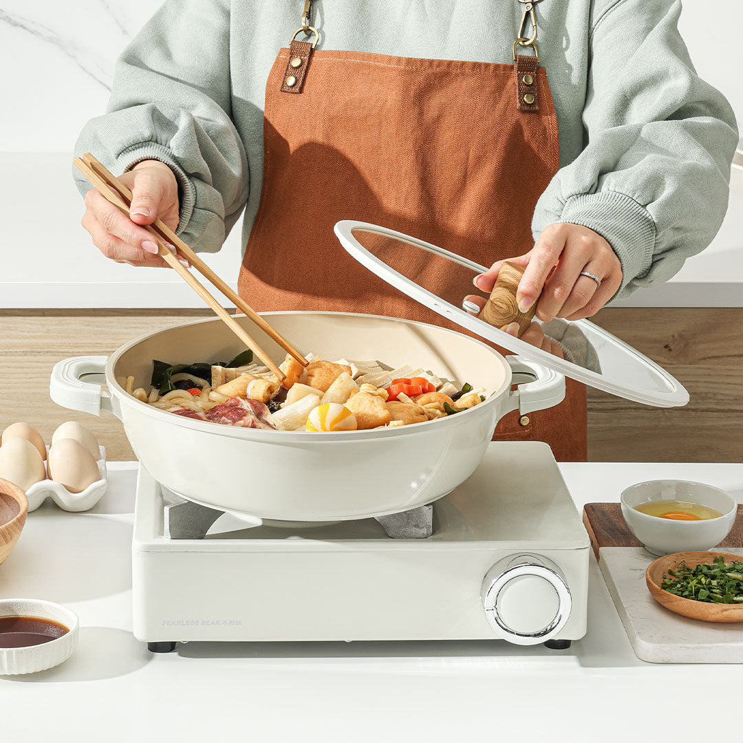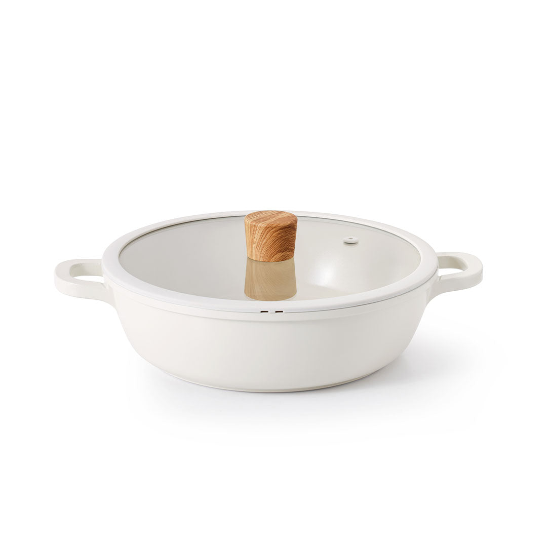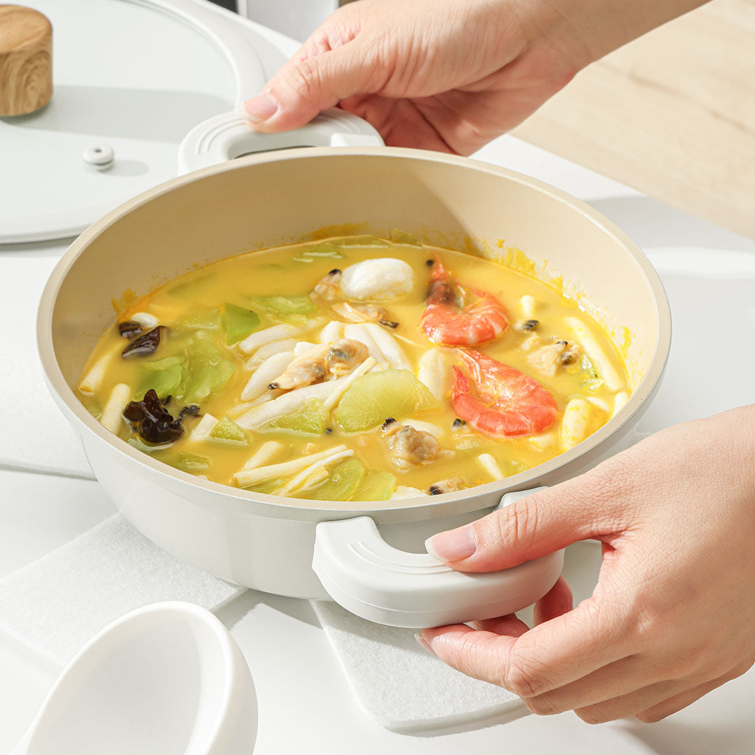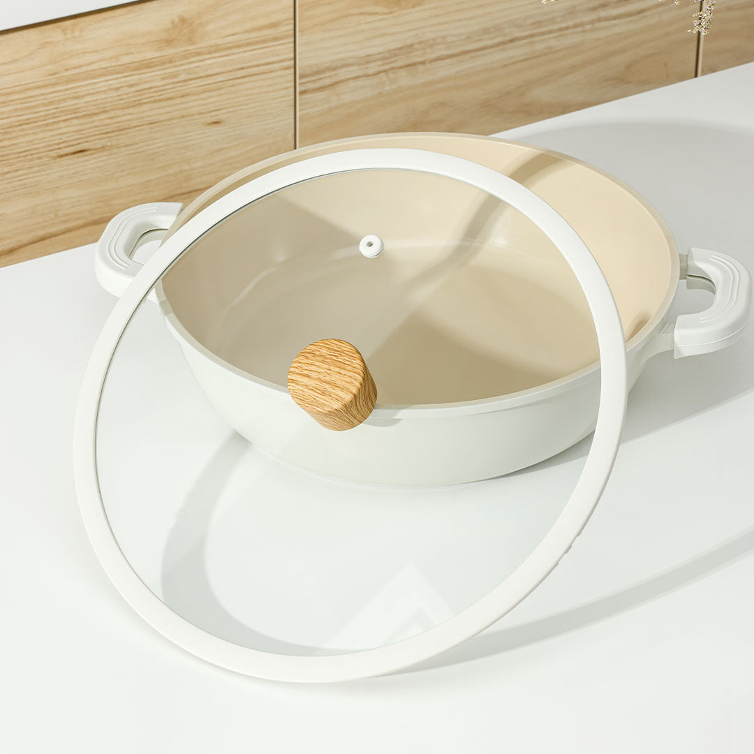 【強化ガラスの蓋】強化ガラスの蓋で、鍋内の材料の調理プロセスを簡単にコントロールし、キッチンでアートを創造するのに役立ちます。